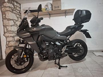 Vendo stupenda Tracer 9 anno 2022 colorazione Tech Kamo. La moto è in ottime condizioni, usata solo in stagione primavera - estate e sempre riparata in Garage. Il mezzo è pronto all’ uso, non necessita di nessun lavoro, in quanto ai 40 mila km è stato sostituito interamente il kit trasmissione (Catena - corona - pignone ) e a 48 mila sono state completamente revisionate le sospensioni, il tutto documentato con fatture. eseguiti sempre e solo tagliandi in officine Yamaha, tutti i documenti disponibili. La moto monta inoltre i seguenti accessori originali Yamaha: - Cambio elettronico quickshifter - Piastra porta pacchi originale Yamaha - Bauletto originale Yamaha 39 l con schienale per il passeggero - Presa usb originale sotto il cruscotto con coperchio impermeabile, per caricare smartphone o altri dispositivi - Griglia pararadiatore Gommata con pneumatici di fascia alta: Metzeler roadtec 02 con meno di 2 mila km.