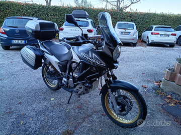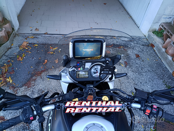 Transalp 700 del 2011 con 39000km. Molti lavori lavori fatti negli ultimi anni: sterzo renthal ,rialzo sterzo,forchetta mono posteriore in acciaio per alzare il posteriore moto di 2.5cm,barra porta accessori con porta telefono e tomtom rider (che do insieme alla moto incluso nel prezzo),indicatore di temperatura esterna e carica batteria,paracoppa inox-alluminio,barre para motore head,fari supplementari a led,luci full led(posizione, anabbaglianti, abbaglianti frecce, luci targa,paramani e specchietti sostituiti con modelli più moderni, doppio cupolino Honda (in foto quello rialzato ma vi lascio anche anche lo standard), scarico omologato leovince con decat,tris bauletti originali Honda,kit pignone (superpignon) corona e catena con 1 anno di vita. Serbatoio e fiancatine riverniciate in carrozzeria (il bianco era ingiallito). Dispongo di tutti i pezzi originali,compreso lo scarico. Ultimo tagliando effettuato a gennaio con sostituzione pastiglie anteriori,candele,filtro olio e filtro olio. Cuscinetti sterzo sostituiti con il kit cuscinetti conici.