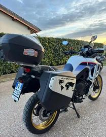 Accessoriata con manopole riscaldate, presa USB, quickshifter, faretti di profondità, cavalletto centrale, tris valigie originali e cupolino rialzato.