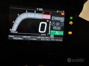 Accessoriata con manopole riscaldate, presa USB, quickshifter, tubolari paramotore e carene, faretti di profondità, cavalletto centrale, tris valigie originali e cupolino rialzato.