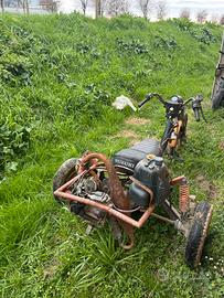 telaio realizzato da 0 con avantreno di un college rs e retro di un ape 50 completo di tutte le sue parti ape volendo si smembra se qualcuno vuole il motore o cambio trapezi ecc perfettamente funzionante si accettano offerte