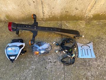 Vendo kit stradale originale Montesa per Cota. Molto probabilmente è adattabile ad altre moto. Il kit comprendo il display/cruscotto completo di cupolino e faro, 4 frecce, blocchetto fari/frecce, supporto parafango posteriore con faro completo, clacson, supporto targa, porta targa sfilabile e relativo impianto elettrico. Il tutto praticamente nuovo. Solo contatto WhatsApp o mail. Non spedisco.