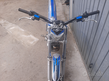 Moto completamente rifatta, preparato il motore da gara, in rodaggio, tantissimi lavori eseguiti ....da vedere!rinforzata ed alleggerita,vendo causa inutilizzo sono rimasti due lavori da fare un paraolio della forcella e la molla della pedalina di accensione.Vero appassionato .per rifarla ci sono vuluti un anno di lavoro e il costo dei lavori conteggiati è di 5000 euro.... guardate voi.