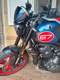 Vendo per passaggio a Crossover Trident 660 in condizioni da vetrina. 800km Moto perfetta, dotazione Full Optional rarissima su questo modello: ELETTRONICA: Cambio Elettronico (Quickshifter), Cruise Control, ABS Cornering, Traction Control. MAPPATURE: 3 Mappe motore (Rain, Road, Sport). PACCHETTO MANUTENZIONE: 3 Tagliandi già pagati (valore 600€). li vendo a 300€ GARANZIA: Ufficiale Triumph ancora per 2 anni. EXTRA: Antifurto e bloccaruota inclusi. Cupolino in tinta Puntale paramotore Moto impeccabile, pronta a partire senza spendere un euro di manutenzione per anni. NO AFFARISTI / NO PERDITEMPO. Non rispondo a offerte ridicole, la moto è nuova