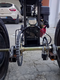 Trike artigianale, telaio realizzato a mano, ruote posteriori 13" derivazione fiat Panda. Motore clone Honda GX200 6.5 HP.