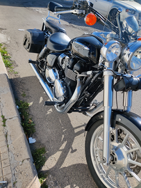 Bellissima Triumph America 900 del 2011. Nessun lavoro da effettuare, diversi accessori come borse laterali originali Triumph, parabrezza originale Triumph, fari supplementari anteriori, poggia schiena posteriore originale Triumph. Prezzo trattabile, disponibile per qualsiasi prova.