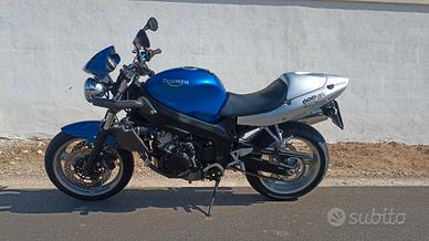 Vendo Triumph baby speed 600 del 2001, serie limitata realizzata in soli 50 esemplari dall'importatore dell'epoca, su base TT600. Pochissime rimaste in circolazione forse l'unica nel colore originale blu e grigio. Prese d'aria e cover serbatoio liquido raffreddamento in vero carbonio. Motore 4 cilindri, iniezione elettronica, 110 cv. Non è il modello Speed four prodotto in serie e depotenziato. Secondo proprietario, presa a marzo 2025, fatto piccolo restauro conservativo estetico. Solo 8890 km, scadenza revisione giugno 2026, scadenza bollo luglio 2026. Contattare solo se realmente interessati all'acquisto. Prezzo non trattabile. Vista e piaciuta. Valuto permuta di mio interesse con pochi km o d'epoca buon conservato o restaurato (125 2t enduro anni 80-90, vespa px, Cosa, lml).