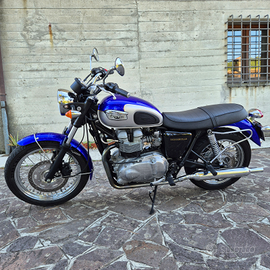 Bellissima Triumph Boneville 790 a carburatori del 2002, prima versione ancora con motore 62cv, colorazione rara blu e panna, 33100km originali, qualche segno del tempo ma in ottime condizioni, comprese anche borse originali Triumph.