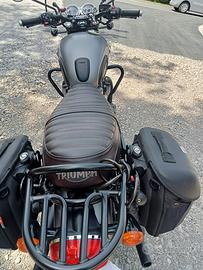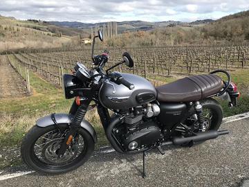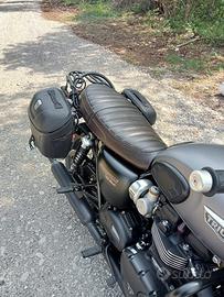 Vendo Bonneville T120 Black edition, come nuova, tnuta sempre in box, usata per giri giornalieri, gomme nuove, sella confort, originale, borse laterali GIVI, portapacchi, paracopa, cupolino turismo, doppia mappatura, Cruise control, paramotore, prolunga parafango anteriore. A corredo, shienalino passeggero in tinta, leve freno e frizione, due cupolini, copia fari supplementari…..tutto compreso. Vendo per inutilizzo.