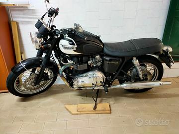 Triumph Bonneville T100(68cv) anno 2010, unico proprietario,tenuta bene,sempre in garage. Leggermente personalizzata: frecce bullet, faretto posteriore eyes,piastra para motore,copri serbatoio in pelle nera. Necessario cambio gomme,freni,revisione e tagliando. Prezzo trattabile