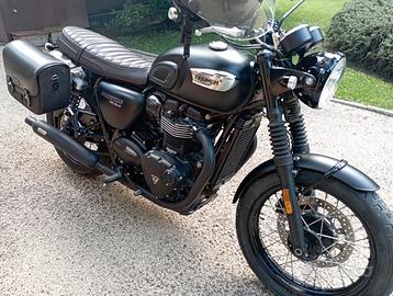 Vendo Moto Triumph Bonneville T100 Black superaccessoriata con borsone, tubi di scarico, parafanghi, cavalletto centrale e altro. Condizioni pari al nuovo