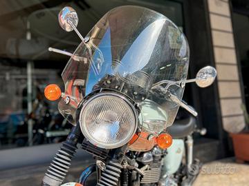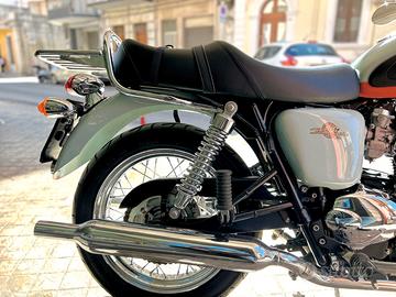 Moto 100% originale, con in più in dotazione sella confort (quella montata), parabrezza e portapacchi cromato, tutto TRIUMPH. Ovviamente la sella originale, con bordatura bianca e scritta posteriore "Triumph" in oro, è messa da parte, e sarà consegnata all'acquirente, insieme al certificato di autenticità.