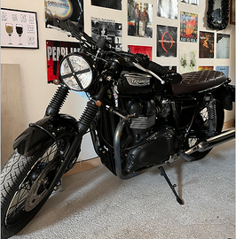 Boneville All Black del 2004 (quindi a carburatore), acquistata dal primo proprietario nel 2006 dal sottoscritto. Utilizzata solo per piccoli tratti, passeggiate di piacere in zona e sempre tenuta in garage. Negli anni ho apportato qualche modifica ma senza cambiare struttura o telaio. Ho semplicemente cambiato pezzi originali con pezzi adatti alla moto. Sono comunque disponibili tutti i pezzi originali. Le gomme sono nuove. Modifiche, come si vede in foto: Manubrio Specchietti Frecce Sella Faro anteriore Faro posteriore Contachilometro Manopole copri tappo motore portatarga clacson tappo benzina con chiave Aggiunte: Supporto borsa laterale Borsa laterale in pelle porta bollo Tape in pelle su manopole pittura nera su cerchioni paraginocchia in pelle su serbatoio Invio foto più dettagliate a chi realmente interessato Vendo per inutilizzo