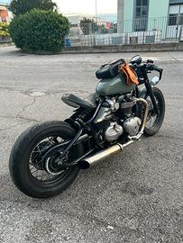 Vendo per trasferimento Triumph Bonneville Bobber 1200, immatricolata nel 2018. Customizzata da “Bottega Bastarda” (Forlì), scarico Vance&Hines, 33.000 km, mai incidentata o caduta, sempre tenuta in garage, tagliandata regolarmente. A Marzo 2025, e’ stato applicato un trattamento nano tecnologico alla carrozzeria e alle plastiche, sempre prima dell’apertura di stagione sono state cambiate gomme e pastiglie freni. Sono in possesso di tutte le sue parti originali (scarichi, sella, manubrio, ecc..). Moto visionabile presso San Giorgio di Mantova.