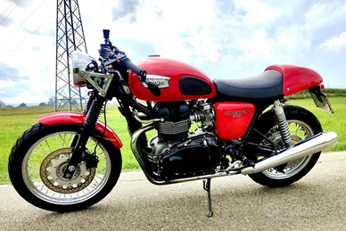Triumph Bonneville del 2001 modificata interamente in stile Triumph Thruxton 900 a carburatori..
