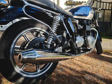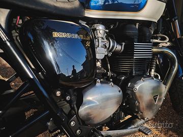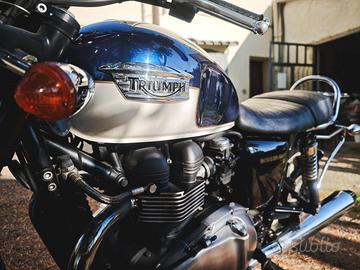 Vendo Triumph Bonneville SE del 2009 con 22.000km. La moto è tenuta con la cura che potete vedere nelle foto, in garage, sotto il telo di protezione e collegata al mantenitore di carica; chiaramente è in perfetto ordine di marcia e disponibile in visione e prova se interessati. Posso fornire altre foto se richiesto, a ulteriore conferma delle condizioni del mezzo. Vendo per inutilizzo ma non svendo: il prezzo è trattabile nei limiti del valore del mezzo e del reciproco rispetto.