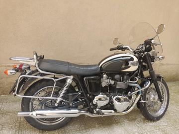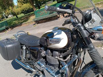 Bellissima, nera e crema con linee oro. Tagliando Triumph e rigommata Metzeler . Paramotore cromato, borse rigide 40 lt con serrature antifurto e sganciabili, parabrezza sganciabile, maniglia passeggero, portapacchi, tappo serbatoio con chiave, tutti gli accessori cromati. Impianto di ricarica batteria. Sempre tenuta in box,nessun danno e nessun sinistro.