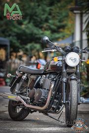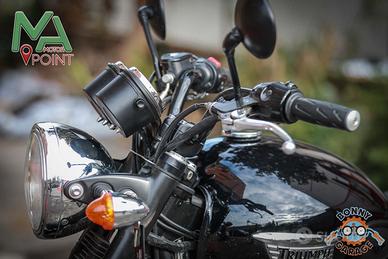 Quelle linee classiche, essenziali, decise, che da decenni contraddistinguono il modello e che fanno si che nell'immaginario collettivo di bimbi e bimbi un po' cresciuti (come il sottoscritto) ricordino precisamente il concetto di "moto". Sella dritta, serbatoio rotondo al punto giusto, un motore bello in vista (e che ha fatto la storia) ed un manubrio. Punto...o meglio virgola perché a ben guardare i cerchi a raggi, gli scarichi bassi, faro tondo e la strumentazione completano il quadro del design, tanto basico quanto affascinante di questa Triumph Bonneville, T100 nello specifico. Forse l'inglese più classica tra le classiche, capace di mettere d'accordo gusti e giudizi di molti appassionati (veri) delle due ruote; parere personale, certo, ma mi pare che in un mondo che si divide tra maxi-enduro stradali e crossover da millemila cavalli, lo stile classico, pacato e affascinate trova sempre estimatori, in ogni dove.