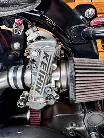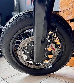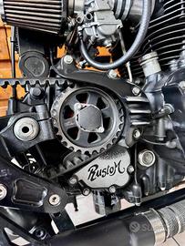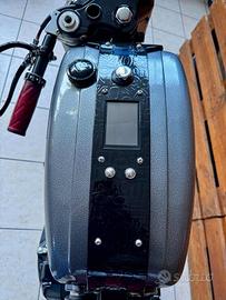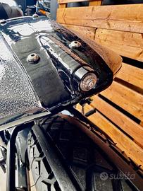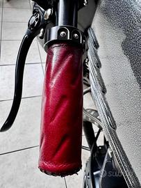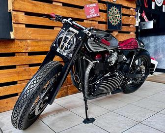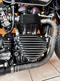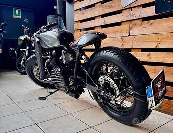 [Rif. 23512736] Triumph Bonneville "Forty" by Rustom - Special Edition Custom In vendita una Triumph Bonneville T100 (2002) trasformata dai maestri customizer italiani Rustom. Questa moto, conosciuta come "Forty", rappresenta uno dei progetti più iconici del laboratorio di Lodi: un mix di cuore inglese e anima italiana, capace di unire tradizione e innovazione con soluzioni tecniche raffinate e un'estetica unica. Caratteristiche principali: -Modello base: Triumph Bonneville T100 (2002) -Cilindrata: 790 cc -Motore: bicilindrico parallelo, elaborato -Testata ribassata per rapporto di compressione maggiore -Condotti di aspirazione e scarico lavorati e lucidati -Carburatori Keihin FCR39 racing -Scarico custom Rustom con terminali Biltwell Cannon End -Potenza stimata: da 71 a circa 85 CV alla ruota Ciclistica e sospensioni: -Telaio: originale accorciato e adattato -Forcella anteriore: stock accorciata di 4 cm con molle Progressive Suspension -Ammortizzatori posteriori: YSS realizzati su misura -Cerchi: 18" con raggi inox e mozzi lavorati, Bartubeless -Pneumatici: Coker Diamond 4.00x18 (anteriore) - 4.50x18 (posteriore) Freni: -Impianto anteriore: kit disco maggiorato con pinza Brembo (Freespirits) -Impianto posteriore: maggiorato e rivisto Dettagli estetici e accessori: -Serbatoio: realizzato a mano da Rustom, con verniciatura speciale e inserti custom -Sella: su misura firmata AS Design, con cuciture a rombi in pelle rossa -Codino: "testa di vipera" artigianale AS Design -Impianto elettrico: completamente rifatto, minimalista -Faro anteriore: artigianale, con copertura e sistema a LED integrato -Strumentazione: digitale con riconoscimento impronta digitale e navigatore satellitare integrato -Dettagli lavorati a mano: leve in stile liberty, manopole in pelle, carter personalizzati Condizioni e unicità: Questa Bonneville Forty è un esemplare unico, costruito come show bike e comparso su riviste specializzate internazionali (Cafe R