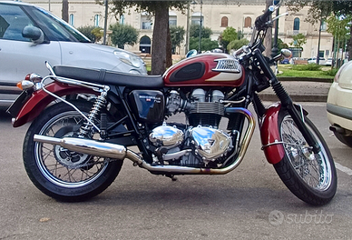 Vendesi Triumph Bonneville T100, originale, sostituiti solo ammortizzatori con quelli professionali di marca Bitubo, cromati e regolabili.