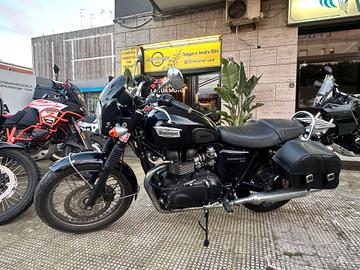 Cupolino touring oltre al suo originale, borse laterali originali Triumph, doppi ammortizzatori (oltre agli originali) per rendere la guida più confortevole, portapacchi con poggia borsa oltre all'originale