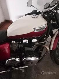 Vendo per inutilizzo moto Triumph Bonneville T100 limited 986 MF dotata di un motore bicilindrico da 865 cc che eroga circa 67 CV, con una coppia massima di 68 Nm. Le sue caratteristiche tecniche includono un peso a secco di 209 kg, un'altezza della sella di 775 mm, un peso in ordine di marcia di 230 kg e una capacità del serbatoio di 16 litri. Perfetta per veri intenditori anno 2011 sempre tagliandata 52000 km sempre box batteria e gomme cambiate da pochissimo lascio nella vendita anche sella originale. Terzo proprietario prezzo trattabile chiamare se veramente interessati, Gianni.