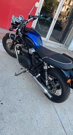 Vendo splendida bonneville T100 con appena 2600 km immatricolata 2/2024. Accessoriata con i seguenti pezzi originali Triumph: - sella "SLIM LITE" marrone in pelle; - borsa laterale sinistra. 2^ Tagliando effettuato ottobre/2025 3^ tagliando gratis. Sempre ricoverata in box tenuta in maniera maniacale
