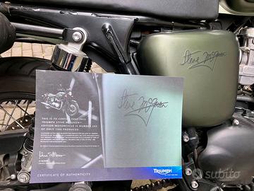 Vendo Triumph Bonneville T100 Steve McQueen Limited Edition, prodotta in SOLI 1.100 esemplari in tutto il mondo, con numero (#243) inciso su placchetta ufficiale.