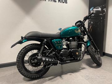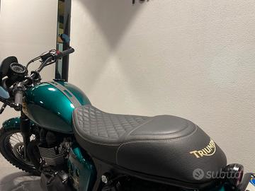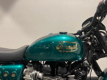 Accessori: colorazione verde inglese - porta targa con fanalino tondo - freccette piccole - sella comfort in pelle con ricamo - scarichi neri - specchietti bar end - leve regolabili - cupolino in tinta - griglia faro - dettagli con logo Triumph - cavalletto centrale - banda serbatoio in pelle.
