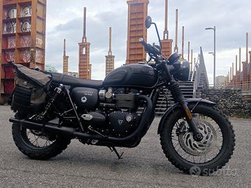 TRIUMPH BONNEVILLE T120 - ANNO 2021 - EURO 5 - 8.000 KM Per scarso utilizzo, bellissima Triumph Bonneville T120 del 2021, versione Euro 5, in condizioni perfette e tenuta maniacalmente. La moto è stata personalizzata ispirandosi al modello T120 Black Ace, con numerosi dettagli e accessori originali che la rendono unica. Cruise control integrato Freni Brembo 8.000 km Tagliandi regolari Pronta all'uso Serbatoio verniciato nero opaco (presso officina Triumph) Emblema Triumph a 3 barre Total Black Indicatori di direzione bianchi Indicatori di direzione gialli Sella marrone classica Sella nera Special Collettori neri opachi originali Triumph Predisposizione antifurto Argo Antifurto bloccadisco Argo incluso Pneumatici Bridgestone AX41 semitassellati nuovi Scocche laterali logate T120 Black 2 borse laterali Kappa RB105 Moto dal look retrò ma con dotazioni moderne, perfetta per chi cerca stile, comfort e affidabilità. Nessun lavoro da fare.
