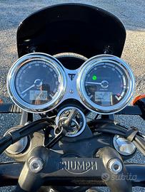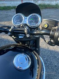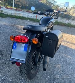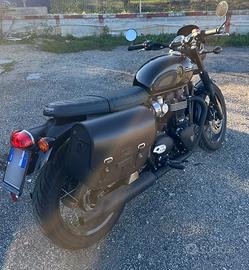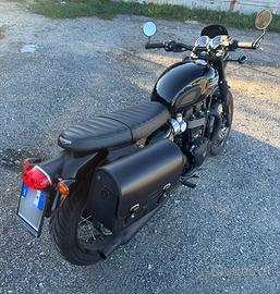 SUPER AFFARE, Boneville jet black edition T120, pari al nuovo, solo 1400 km, tagliandata a 1000km dalla Triumph Napoli, estensione garanzia 1 anno. Accessori assemblati originali: Sella bench rombi nera, specchietti bar end, borsa lateraledestro cotone e pelle. In omaggio una sella bench marrone a rombi.