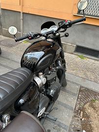 SUPER AFFARE, Boneville jet black edition T120, pari al nuovo, solo 1400 km, tagliandata a 1000km dalla Triumph Napoli, estensione garanzia 1 anno. Accessori assemblati originali: Sella bench rombi nera, specchietti bar end, borsa lateraledestro cotone e pelle. In omaggio una sella bench marrone a rombi. Unico proprietario, tenuta sempre in garage con telo. Vendo per impossibilità di utilizzo.