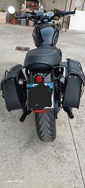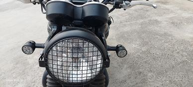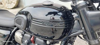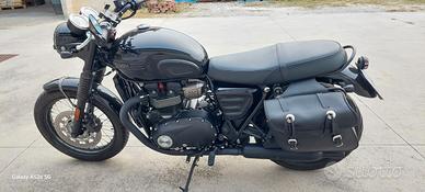 Vendo Triump Bonneville T100 Black accessoriata con 2 borse in pelle, 2 telaietti neri per borse, specchietti manubrio end bar, frecce a LED piccole, scritte sul serbatoio nere, maniglione passeggero, chiave di scorta, faro posteriore piccolo a led, faro a led anteriore con griglia nera . Vendo a 7500 € .