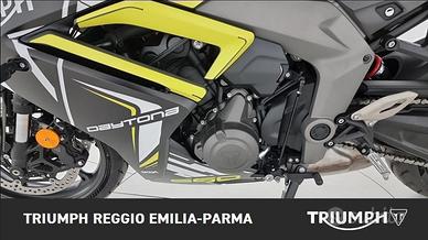 TRIUMPH Daytona 660 Abs color Nero Pastello del 2025. Il motociclo è alimentato a Benzina e ha un cambio Meccanico. Pratica: Accessori : ABS