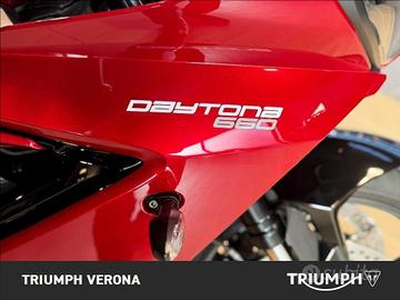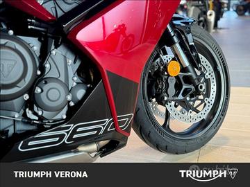 TRIUMPH Daytona 660 Abs color Carnival Red & Sapphire Black del 2026. Il motociclo è alimentato a Benzina e ha un cambio Meccanico. Pratica: NUOVA DAYTONA 660 DNA sportivo, look moderno. Linee pulite, guida intuitiva e assetto sportivo si uniscono alle prestazioni del motore a tre cilindri per dare vita alla Daytona 660, una moto nata per divertirsi su ogni strada. UNA NUOVA FORMA DI SPORTIVITA' List. Euro 9.495,00 PROMO Euro 1.450,00 di Vantaggio per acquisto con formula finanziaria TRIUMPH Verona TAKE IT EASY all inclusive: Estensione di Garanzia TRIUMPH Just Ride +24 Mesi Pacchetto Manutenzione TRIUMPH Take Care Urban Assicurazione CREDIT LIFE Assicurazione Furto Incendio EUROPE ASSISTANCE 24 mesi Anticipo Euro 1.500,00 e 60 Rate mensili Euro 195.00 Per ulteriori informazioni non esitare a contattarci Emiliano - - vendite@triumphverona.it Cristian - - cristian.zanoni@triumphverona.it Accessori : 3 Riding Mode: RAIN, ROAD e SPORT, ABS, Cruscotto TFT, Indicatori di direzione a LED con disattivazione automatica, Traction Control