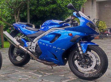 Vendo Triumph Daytona 955i anno 2002. Colore Caspian Blue. Perfetta. Unico proprietario. Revisione fatta giugno 2024. Sempre tenuta in garage. Completa di codino monoposto in alternativa della sella del passeggero. Batteria nuova installata a maggio 2024.