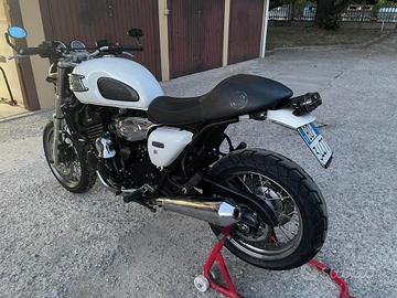 Triumph Legend 900 TT versione 1. immatricolata nel marzo 2001, bianca. Km. 30.500 ca. Pronta all'uso. Moto perfetta. Sella custom, fari led, borse laterali in pelle. Gomme nuove. Dispongo degli originali di: sella, faro, frecce, parafango posteriore, faro posteriore,retrovisori