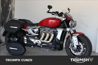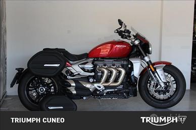 TRIUMPH Rocket III 2500 R color rosso del 2022. Il motociclo è alimentato a Benzina e ha un cambio Meccanico. Pratica: TRIUMPH ROCKET. 3. COLORE ROSSO. 06/2022 KM 5500 ACCESSORI BORSE LATERALI CUPOLINO