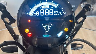 Accessori: portapacchi originale Triumph, parafango alto originale Triumph, griglia faro originale Triumph, bilancieri salva forcelle originali Triumph, paramani originali, borsa laterale originale, guance para gambe serbatoio, parabrezza alto Dart.