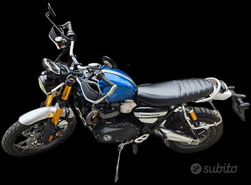 Triumph Scrambler 1200 XE – Anno 2020 – 15.000 km In vendita Triumph Scrambler 1200 XE immatricolata nel 2020 con 15.000 km. Moto in ottime condizioni, sempre mantenuta con cura e regolarmente tagliandata. Modello versatile e potente, ideale sia per uso su strada che per percorsi off-road leggeri. Dotata di motore da 1.200 cc e circa 90 CV, offre ottime prestazioni e comfort di guida. Caratteristiche principali: - Colore: blu cobalto - ABS, controllo di trazione e diverse modalità di guida - Sospensioni di alta qualità (Showa/Öhlins) - Cruise control - Illuminazione LED Condizioni: Moto in condizioni generali molto buone, senza incidenti e senza difetti tecnici noti. Accessori inclusi: - Valigie da viaggio - Griglia di protezione (radiatore) - Caricabatterie - Modulo Connectivity Visione e prova su appuntamento. Per ulteriori informazioni non esitare a contattarmi.