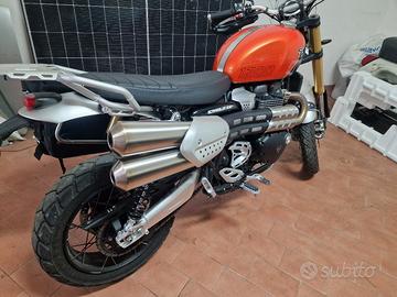 vendesi Triumph Scrambler 1200 xe c9me nuova, ancora in garanzia con circa duemila euro di accessori, borsa laterale con serratura, borsa centrale, cupolino alto,mantenitore di carica originale, tutti gli accessori s9no originali Triumph. Tagliandata annualmente alla Triumph Catania, ancora in garanzia, neppure un graffio solo tremila kilometri, in questa configurazione nuova costa circa 19000 euro. vendesi 14000 euro , possibilità di allungare la garanzia