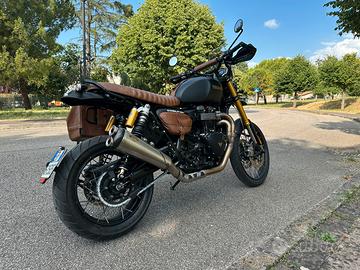 Vendo la mia scrambler 1200 xe con 9970 km. La moto l'ho acquistata presso la concessionaria Triumph di Lucca ed è una moto non comune. È stata ritirata da un privato con 7500 km e completamente customizzata in ogni minimo dettaglio. Fra scarico elementi in pelle porta targa luci verniciatura di più di 50 elementi in nero opaco, ha quasi 6000 euro di modifiche. È stata in esposizione al motor show del 2023. La maggior parte dei pezzi sono della ditta alos cafe, leader italiani nei pellami ed elementi di qualità superiore. Le gomme sono letteralmente nuove ho un'altro treno nuovo che mi è stato regalato dalla concessionaria e tutti i pezzi originali compreso lo scarico. C'è stato un lavoro importante per ottenere il risultato finale. La vendo perché non ho tempo di usarla è ed assolutamente immacolata, nemmeno mezzo graffio. Per altre informazioni potete contattarmi