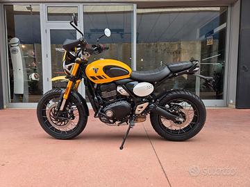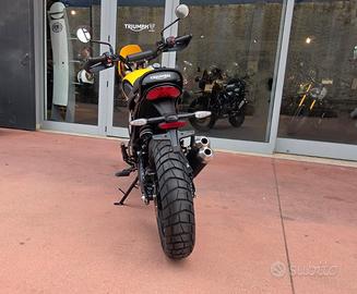 SCRAMBLER 400 xc Moto in Pronta Consegna Colore Racing Yellow Possibilità di Finanziamento e Consegna in tutta Italia Motore e Trasmissione Motore Monocilindrico raffreddato a liquido, 4 valvole, doppio albero a camme in testa Cilindrata 398 cc Alesaggio 89 mm Corsa 64 mm Rapporto di compressione 12:1 Potenza Massima (CE) 40 CV (29,4 kW) a 8,000 giri/min. Coppia Massima 37,5 Nm a 6.500 giri/min. Sistema di iniezione Iniezione elettronica Bosch con controllo elettronico dell'acceleratore Scarico Impianto di scarico con collettore a doppio strato e silenziatore in acciaio inossidabile Trasmissione finale Catena X-ring Frizione Multidisco in bagno d'olio, antisaltellamento, assistita Cambio 6 rapporti Telaio Telaio Misto trave/perimetrale, in tubi di acciaio, telaietto posteriore imbullonato Forcellone Doppio braccio, in lega di alluminio fuso Ruota Anteriore A raggi con pneumatici tubeless, 19 x 2.5 in Ruota Posteriore A raggi con pneumatici tubeless, 17 x 3.5 in Pneumatico Anteriore 100/90-19 Pneumatico Posteriore 140/80-17 Sospensione Anteriore Forcella a steli rovesciati Big Piston da 43 mm Corsa ruota:150 mm Sospensione Posteriore Monoammortizzatore posteriore a gas con serbatoio separato e regolazione del precarico Corsa ruota:150 mm Freno Anteriore Disco fisso da 320 mm, pinza radiale a quattro pistoncini, ABS Freno Posteriore Disco fisso da 230 mm, pinza flottante a singolo pistoncino, ABS Strumentazione e Funzioni Tachimetro analogico singolo con display LCD multifunzione integrato Dimensioni e Peso Larghezza Manubrio 901 mm Altezza Senza Specchietti 1169 mm Altezza Sella 835 mm Interasse 1418 mm Angolo di Inclinazione 23,2 ° Avancorsa 108 mm Peso in ordine di marcia 186 kg Capacità Serbatoio 13 l Consumo di carburante 3.8 l/100km Dotazioni di serie Protezione carter in alluminio, Tachimetro analogico con display LCD multifunz