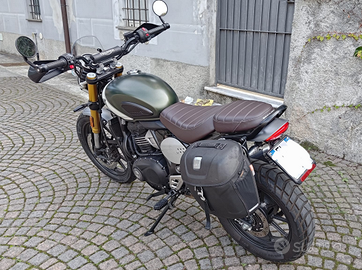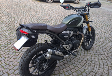 Immatricolata luglio 2024. Ottimo stato (batteria nuova), tagliandata. Accessori: supporto e borsa laterale Givi, porta targa, specchietti cafe racer, cupolino trasparente originale (eventuale pignone 15 denti originale per allungare marce)