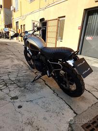 GARANZIA 12 MESI, MOTO PERSONALIZZATA DA TRIUMPH SOUTH GARAGE MILANO, PIASTRE IN ALLUMINIO DAL PIENO, CARTUCCE ANDREANI, STRUMENTO MOTO GUDGET, POMPA FRENO BRAKING RADIALE, SPECCHIETTI IN ALLUMINIO, SCARICO SPARK 70'S, FIANCHETTI IN ALLUMINIO, PARAPIGNONE IN ALLUMINIO, SELLA IN CUOIO, PARAFANGO ANTERIORE E POSTERIORE IN ALLUMINIO, PEDANE PILOTA E PASSEGGERO IN ALLUMINIO, PORTATARGA CON FARO LUCAS.