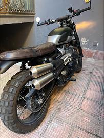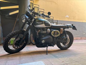 Street Scrambler anno 2019 customizzata da officine Motodesigncustoms (supporto faro anteriore, parafango posteriore con portatarga, faro posteriore e frecce, gomme tassellate, ammortizzatori posteriori regolabili, specchietti end bar etc.) dispongo comunque di tutti i pezzi originali, da poco tagliandata (dimostrabile) presso concessionaria Triumph di Napoli.