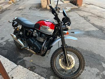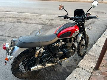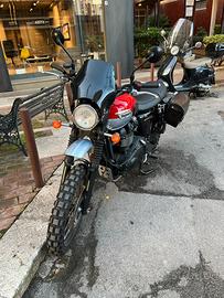 Vendo splendida Triumph Scrambler 900 immatricolata nel 2015, con circa 16.000 km reali. Moto in eccellenti condizioni estetiche e meccaniche, sempre tenuta in garage e utilizzata esclusivamente per il tempo libero. La moto si presenta in una particolare ed elegante colorazione rosso e grigio, ed è stata accessoriata con componenti di qualità che ne esaltano lo stile e le prestazioni. Optional e accessori: •Borsa laterale originale in cuoio e tessuto completa di attacchi •Maniglione sella cromato •Cupolino •Fascia copri serbatoio •Scarico artigianale Zard basso •Parafango anteriore alto •Sospensioni Ohlins •Ruote tassellate Moto pronta all’uso, ideale sia per la città che per gite fuori porta e strade bianche. Prezzo: 6.500 € Disponibile a valutare permuta con scooter.