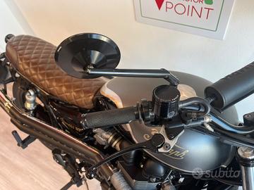 Completamente customizzata da South Garage Milano. Marmitta e terminali. Paracalore e bende marmitta. Dischi freno a margherita. Traversino manubrio. Sottocoda posteriore. Finachetti e carter allum. pignone South Garage. Pedane nere guidatore / passeggero. Supporto cavo frizione nero opaco. Supporto parafango nero opaco. Supp regolatore di tensione + clacson. Supporto Motogadget. Contachilometri Motogadget. Pomello starter nero Triumph. Kit accensione nero lato SX. Parafango anteriore liscio. Verniciatura serbatoio. Riser South Garage. Piastre di sterzo South Garage. Specchietti South Garage. Mezzo in conto vendita. Garanzia assicurativa di 12 mesi, finanziabile da 12 a 72 mesi. Spedizione e consegna in tutta Italia.