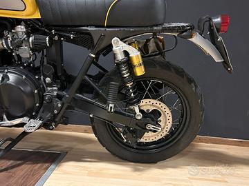 GP Moto propone un pezzo unico: una Triumph Scrambler (2013) totalmente reinterpretata in chiave Cafe Racer. Questa moto fonde l'anima off-road della Scrambler con l'eleganza aggressiva delle corse anni '60. Una colorazione Giallo iconica e una ciclistica rivoluzionata la rendono una special pronta per essere ammirata e guidata con orgoglio.