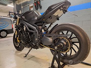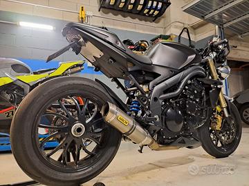 Vendo triumph speed triple 1050 del 2007, moto con 39000km. La moto monta: - Manubrio basso Rizoma - risers Rizoma - specchi bar-end - frecce a LED Rizoma - luci anteriori a LED - farò posteriore a LED - scarico Arrow lowboy Triumph - filtro a pannello lavabile - tubi in treccia - dischi Braking Anteriori e Posteriore -pompa radiale Accossato 19x20 - cupolino + puntale + monoposto + pinna paracatena - cerchi modello 2008 - pedane verniciate nere a polvere - pedane passeggero corte daytona 955+ rete coprisella in silicone antiscivolo passeggero. Forcelle appena revisionate da Poletti (Revisione-taratura-scorrevolezza) Appena sostituito statore e regolatore tensione. Moto tagliandata 5000km fa ( olio, f.olio, liquido freni, pasticche anteriori, candele, pulizia corpo farfallato) Kit trasmissione con 10000km. Vendo solo per passaggio a sport tourer, valuto scambio esclusivamente con Tracer 900. Possibilità di trasporto/tagliando preconsegna (sono meccanico).